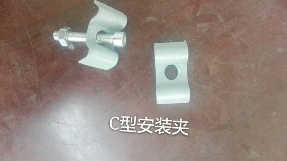C型:由一塊帶雙鉤的上壓板和一支可焊接在支撐構(gòu)件上的M8的六角頭螺栓組成。