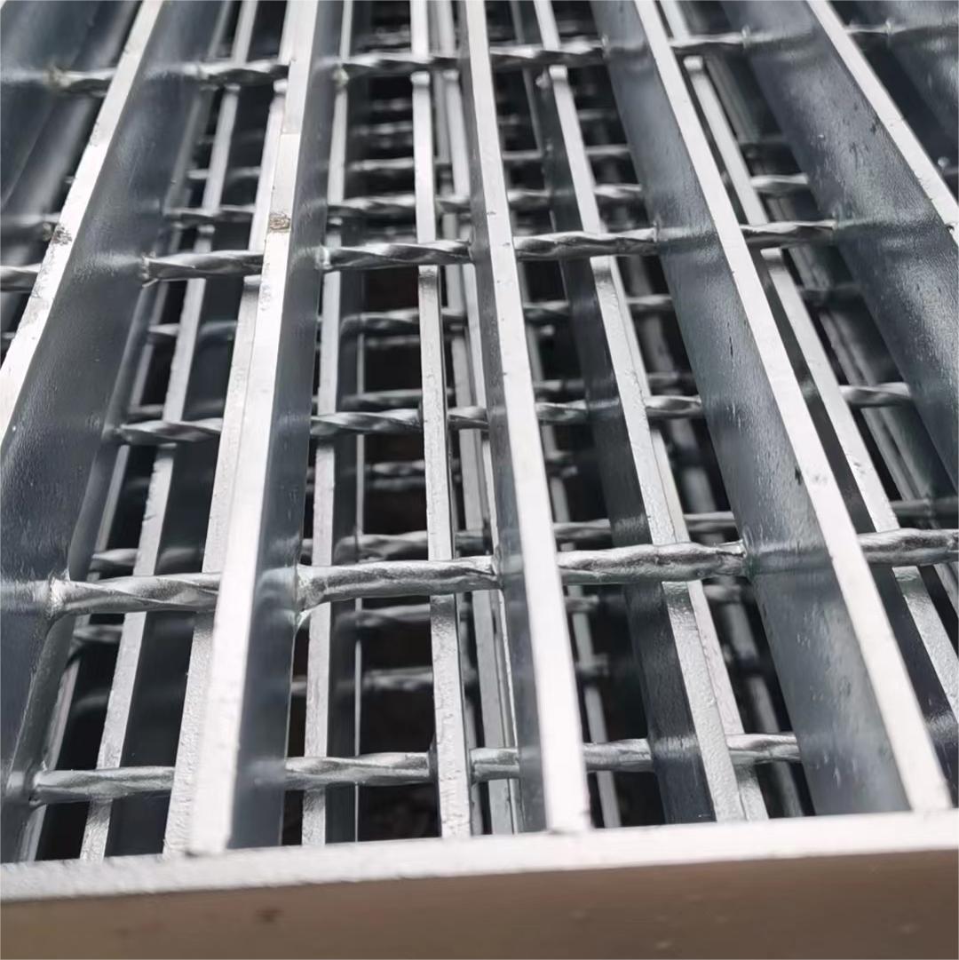 355/30/100鋼格柵用高度35毫米,厚度5毫米扁鐵與麻花鋼交叉焊接而成,扁鋼間距30毫米,麻花鋼間距100毫米。熱鍍鋅處理不腐不銹。